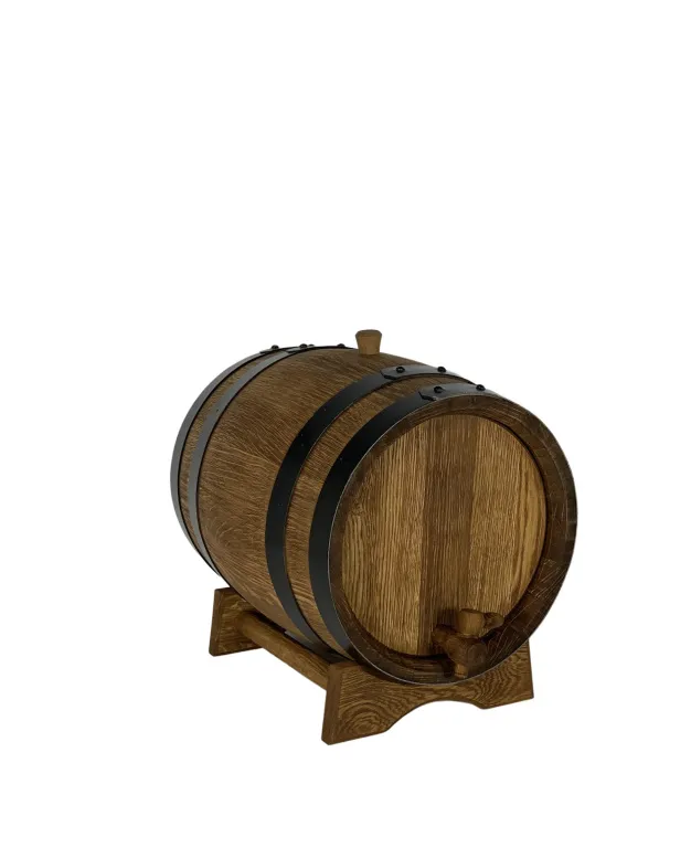 Бочка дубовая изготовлена из высококачественного дуба. Оптимально подходит для выдержки и облагораживания алкогольных напитков. В комплектацию изделия входит подставка, кран, пробка, веревочное оплетение. Снаружи бочонок покрыт маслом растительного происхождения. Обруч выполнен из оцинкованной стали, покрыт молотковой эмалью. ВНИМАНИЕ! Обязательно ознакомьтесь с инструкцией по подготовке и использованию бочки
