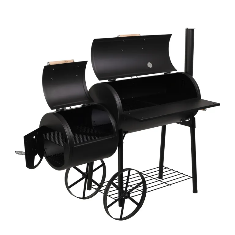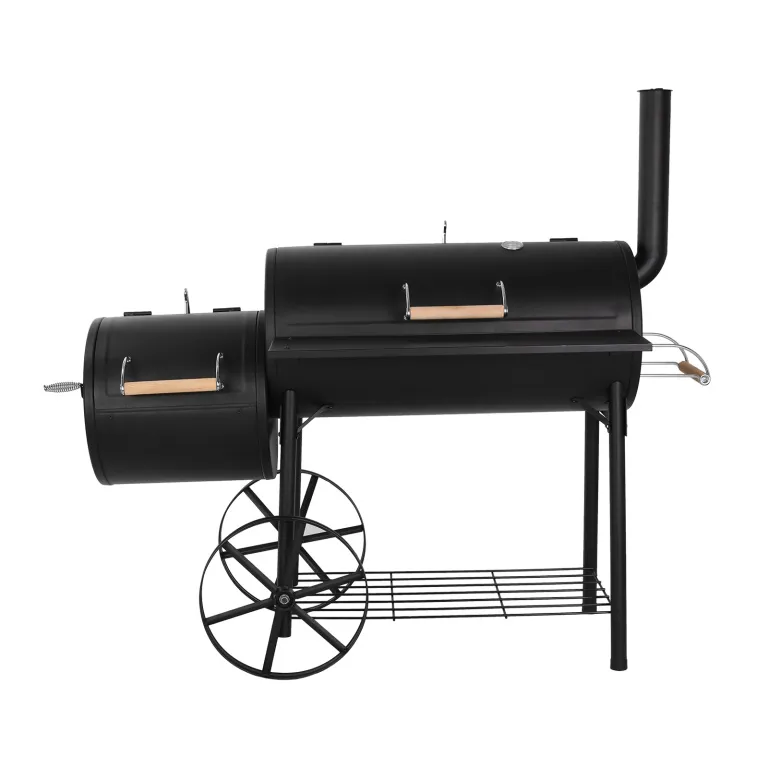 Гриль-коптильня на 2-х колесах с металлической полкой из толстой стали.