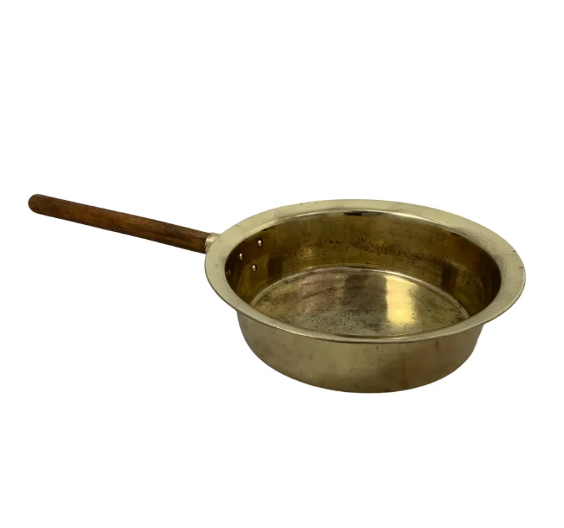 Варенница с деревянной ручкой, Диаметр 355 мм, Глубина 90 мм, ГМЗ Кольчугино, восстановлен, латунь, желтый