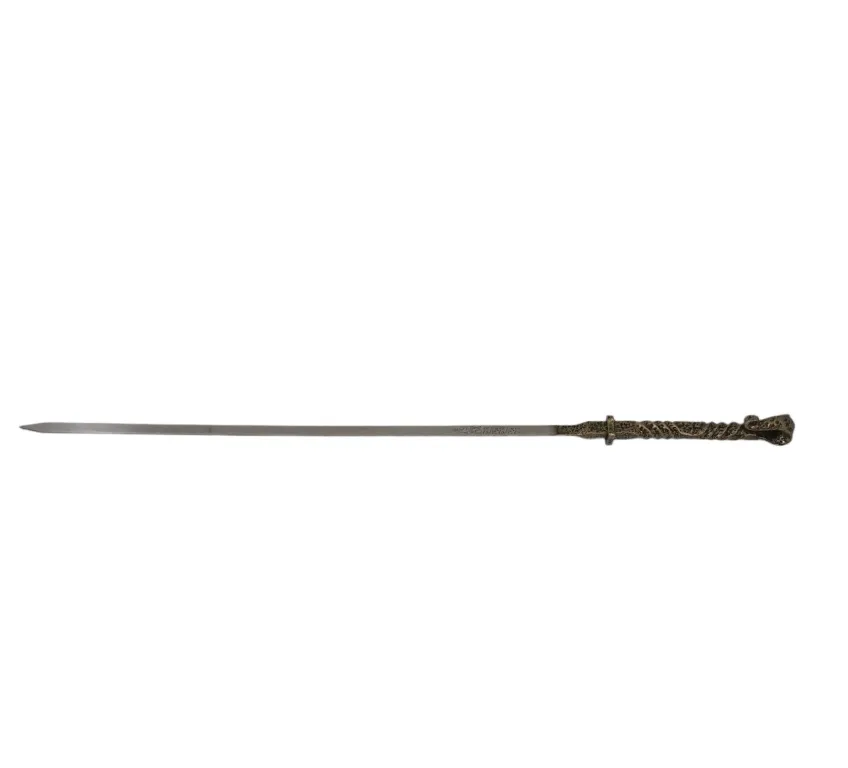 Шампур кованный, нержавеющая сталь, длина 740 мм (без ручки 540х11х3 мм), крюк, волна, золото