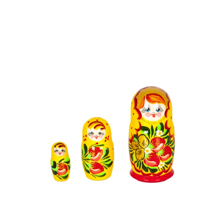 Матрешка Земляничка, 3 куклы, желтое платье, художественная роспись
