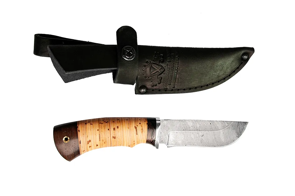 Нож Карась, сталь дамаск, рукоять береста, (Ворсма)