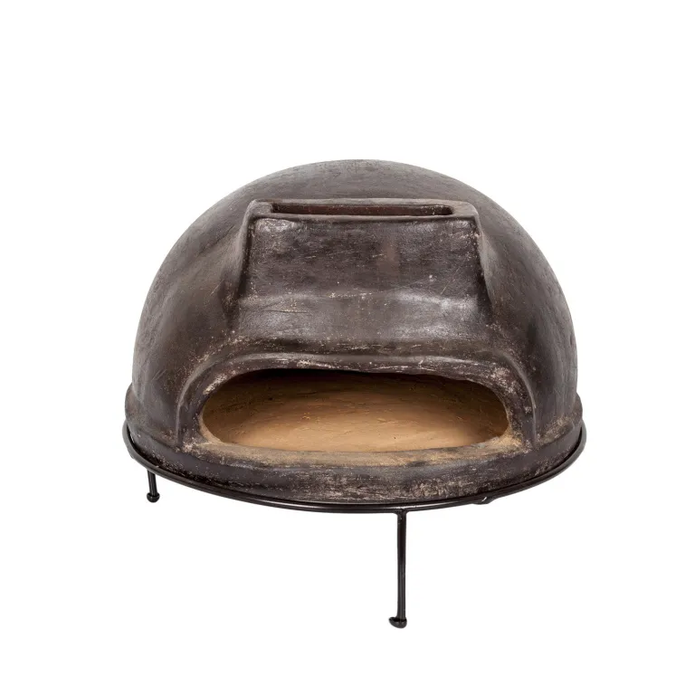Дрова горят в задней части печи, а блюдо готовится