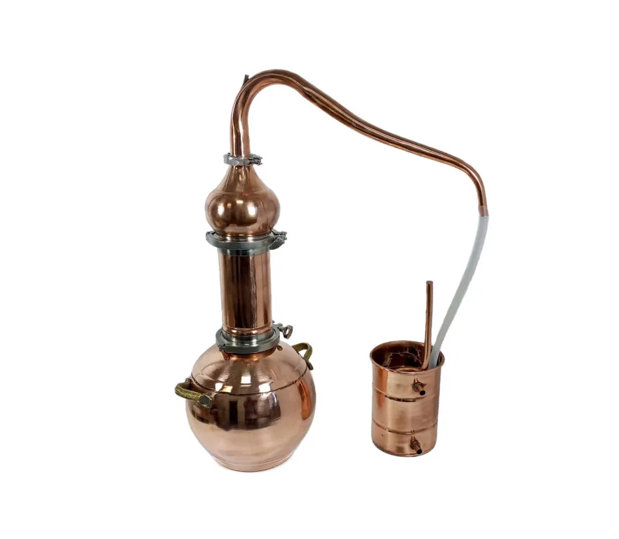 Аламбик – это уникальный дистиллятор, позволяющий получить, путем перегонки исходного сырья, алкогольный продукт высочайшего качества. Это могут быть кальвадос, абсент, виски и т.д. Основное преимущество аламбика - это медь, из которого он изготовлен. Медь абсорбирует оксид серы, выделяемый в процессе брожения и, тем самым, исключает присутствие нежелательного запаха и неприятного привкуса в конечном продукте. Медь является классическим металлом в коньячной и вискарной промышленности за рубежом. При перегонке медь насыщает напиток ионами, благодаря которым выдерживание в дубовых бочках ускоряется, так же полностью раскрывается вкус напитка.