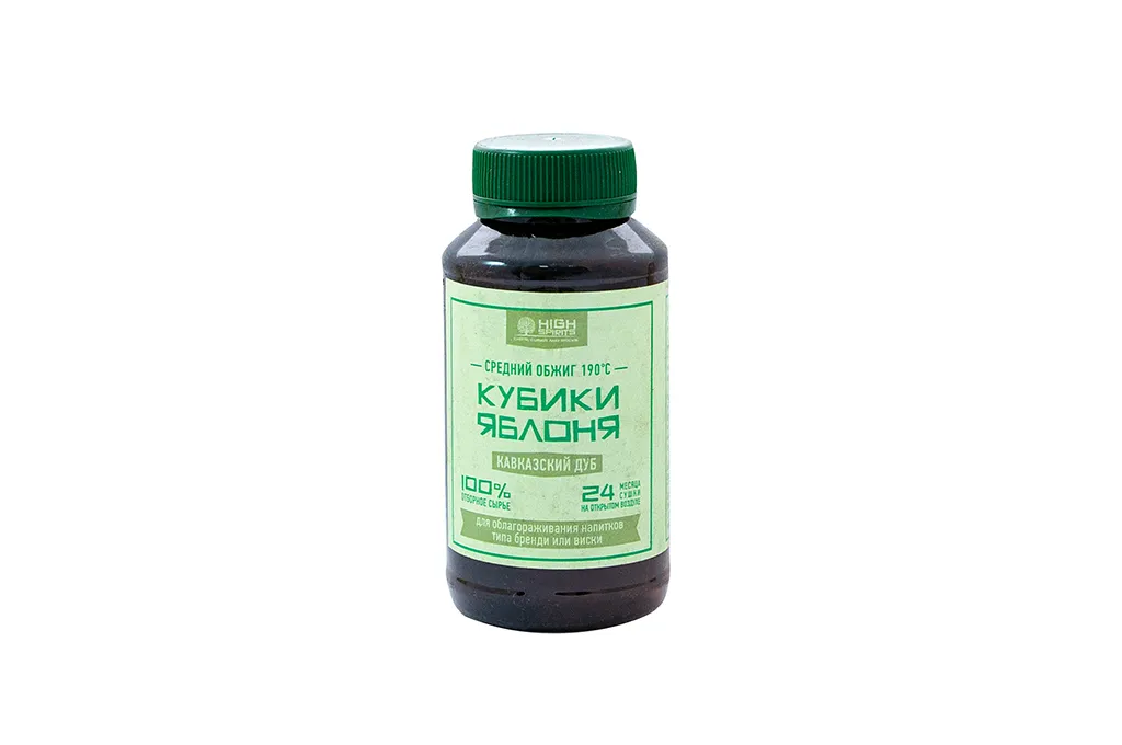 Рекомендуется периодически переливать дистиллят из емкости в емкость для насыщения кислородом и интенсификации созревания спиртов. Кубики изготавливаются из высококачественной отборной древесины яблони, высушенной в естественной среде под открытым небом. Щепа обожжена в специальной печи по особой технологии, что гарантирует высокое качество.
