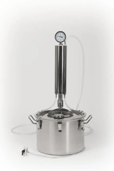 При выборе важным критерием является объем кастрюли. Нужно понимать, что от нее будет зависеть получаемое количество жидкости, ведь большей частью начальной смеси является вода, которая впоследствии будет удалена. Рекомендуется выбирать аппарат объемом не менее 15 литров.