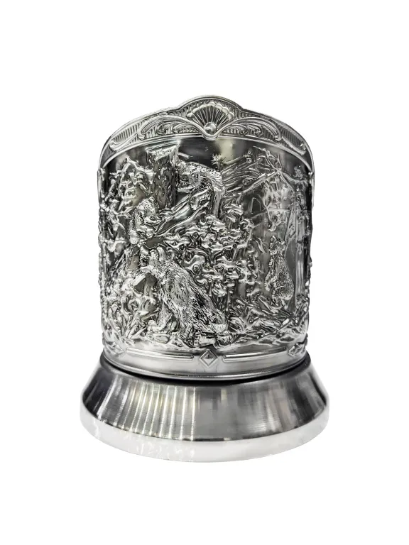 Подстаканник Мишки в лесу, никель с чернью (Кольчугинский мельхиор)