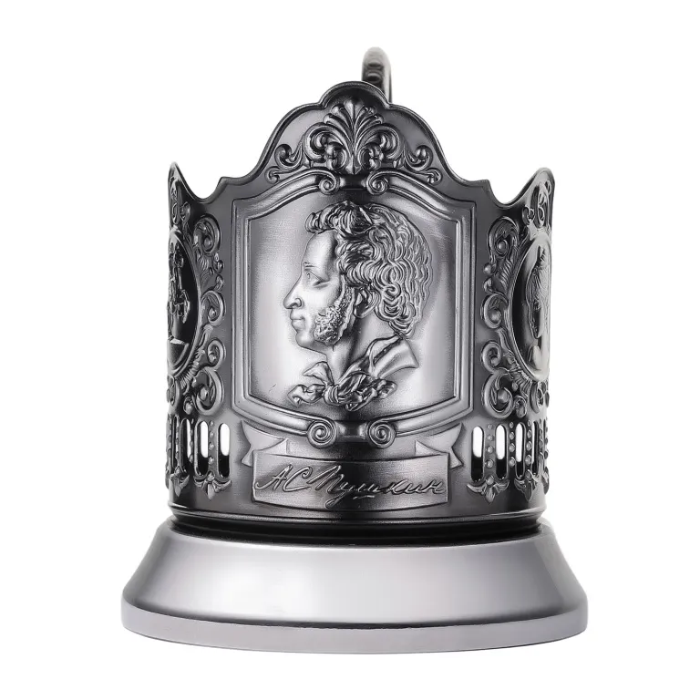 Подстаканник Пушкин, никель с чернью