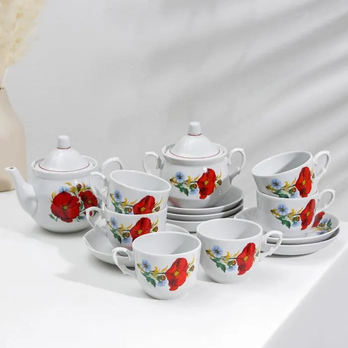 Чайный сервиз Маки красные, 14 предметов, Добрушский фарфор