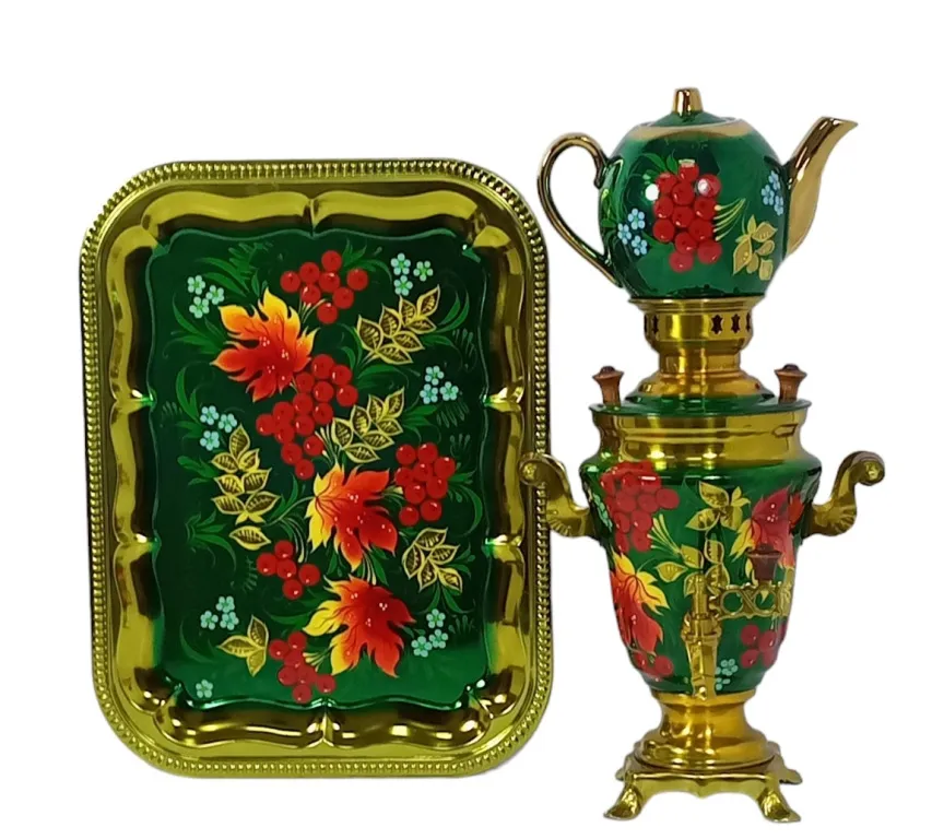 Самовар электрический 1,5 л в наборе, Клен кудрявый на зеленом фоне