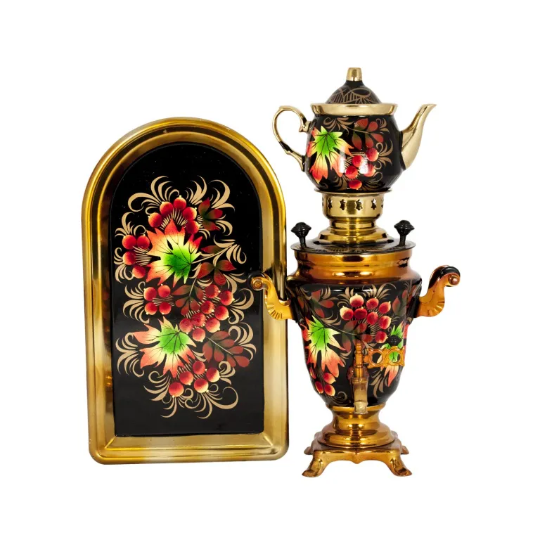 Самовар электрический 1,5 л в наборе, Клен на черном фоне
