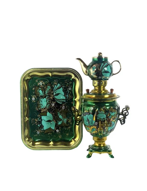 Самовар электрический 3 л в наборе, Аленький цветок бирюзовый, желудь
