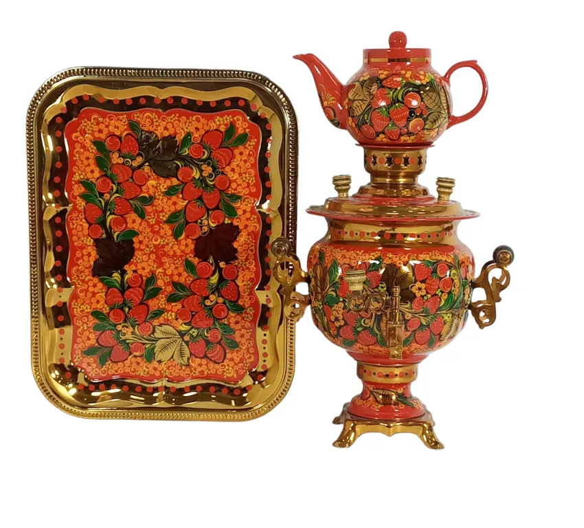 Самовар электрический 3 л в наборе, Хохлома, Клубника с морошкой, овал