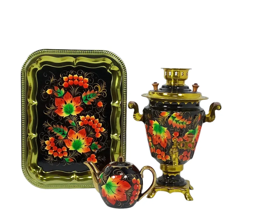 Самовар электрический 3 л в наборе, Клен на черном фоне, конус