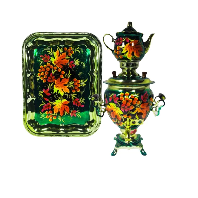 Самовар электрический 3 л в наборе, Клен на зеленом фоне, желудь