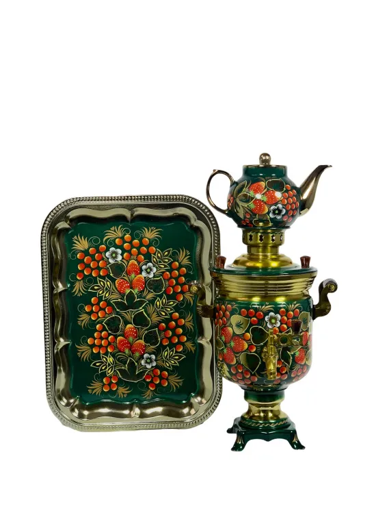 Самовар электрический 3 л в наборе, Клубничная поляна на зеленом фоне, банка