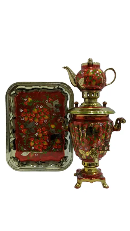 Самовар электрический 3 л в наборе, Клубника летняя на красном фоне, конус