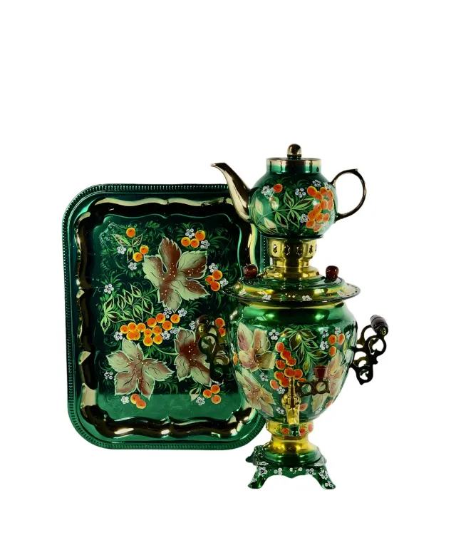 Самовар электрический 3 л в наборе, Осень на зеленом фоне, желудь