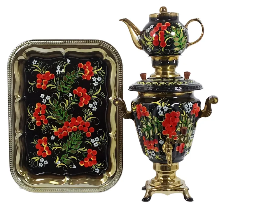 Самовар электрический 3 л в наборе, Рябина кудрявая на черном фоне, конус