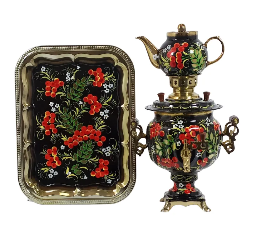 Самовар электрический 3 л в наборе, Рябина кудрявая на черном фоне, овал