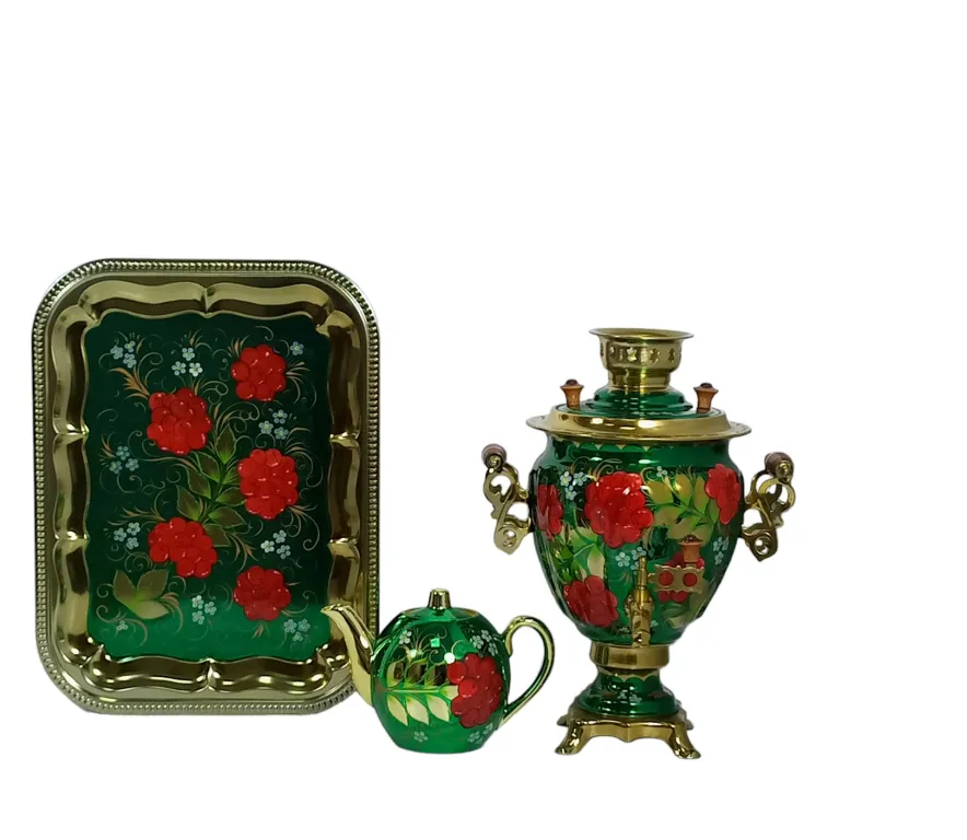 Самовар электрический 3 л в наборе, Рябина на зеленом фоне, желудь