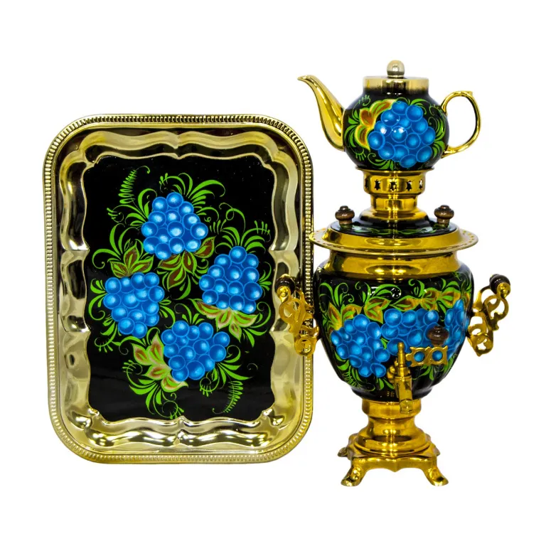 Самовар электрический 3 л в наборе, Виноград на черном фоне, желудь