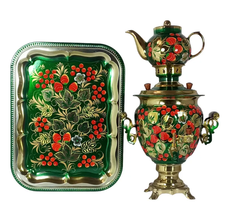 Самовар электрический 3 л в наборе, Ягодное поле на зеленом фоне, желудь