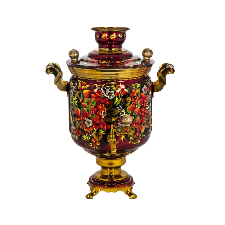 Самовар электрический 10 л, Клубничное ассорти на красном фоне, банка