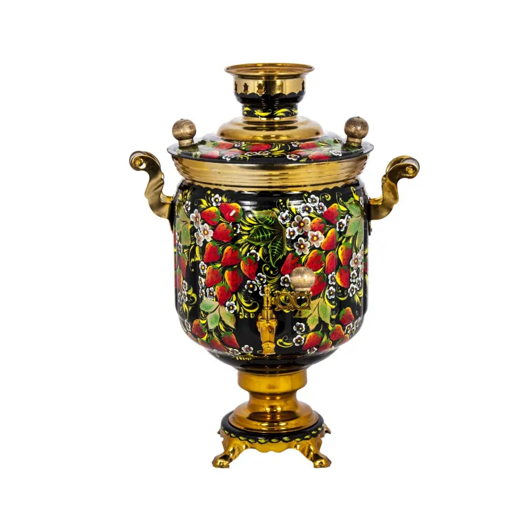 Самовар электрический 10 л, Ветки клубники на черном фоне, банка