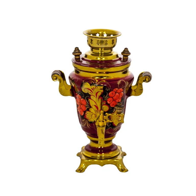Самовар электрический 1,5 л, Рябина рыжая на красном фоне