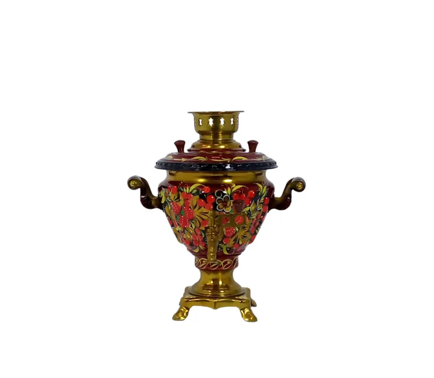 Самовар электрический 2,0 л, Клубника с ягодами на красном фоне
