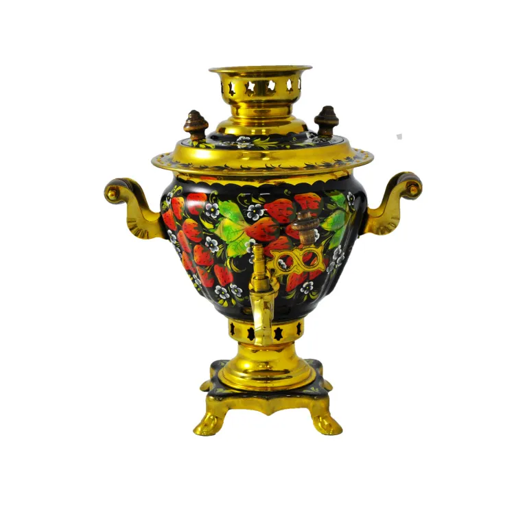 Самовар электрический 2,0 л, Ветки клубники на черном фоне
