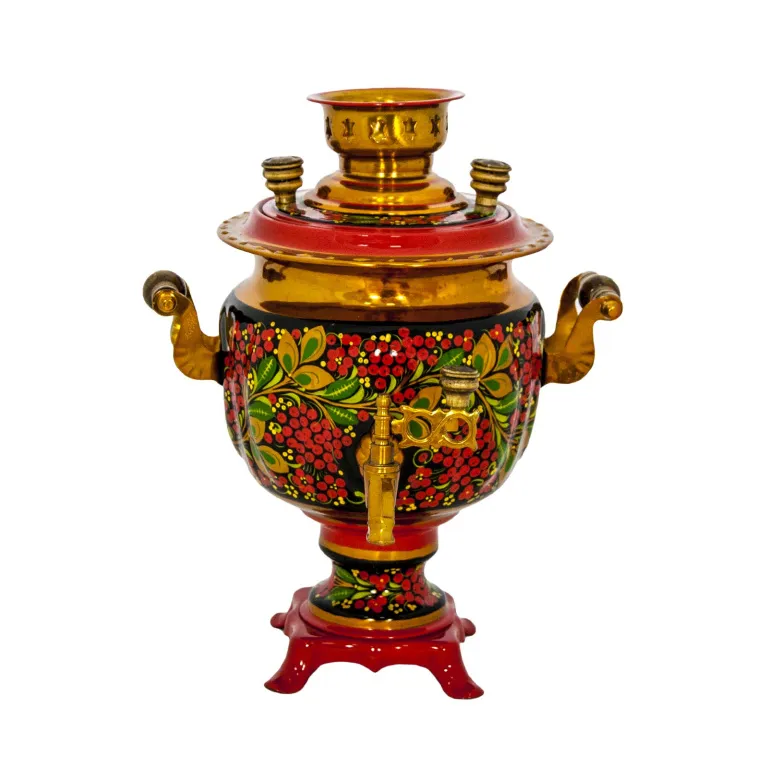 Самовар электрический 3 л, Хохлома, Брусника на черном, овал