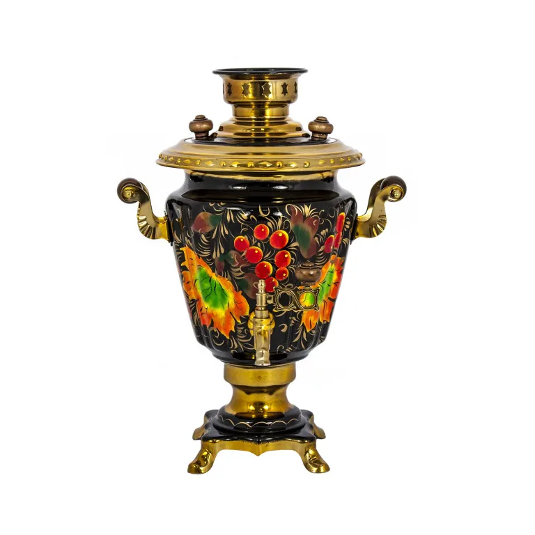 Самовар электрический 3 л, Клен оранжевый на черном фоне, конус
