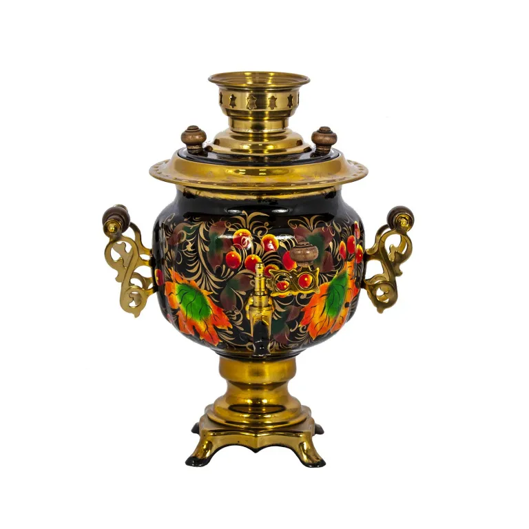Самовар электрический 3 л, Клен оранжевый на черном фоне, овал