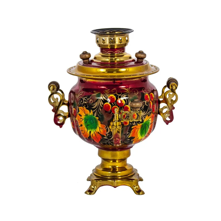 Самовар электрический 3 л, Клен оранжевый на красном фоне, овал