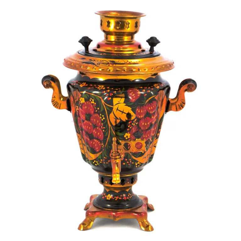 Самовар электрический 3 л, Клубника под хохлому на черном фоне, рюмка