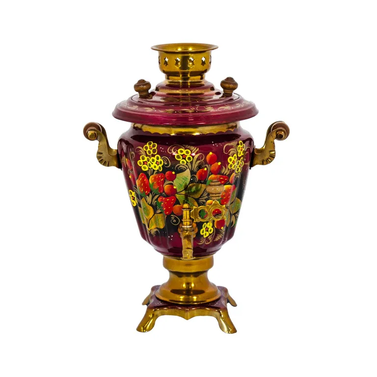 Самовар электрический 3 л, Клубника с желтыми цветочками на красном, конус