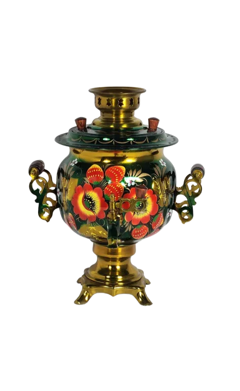 Самовар электрический 3 л, Маки на зеленом фоне, овал