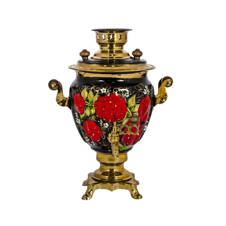 Самовар электрический 3 л, Рябина красная на черном фоне, желудь