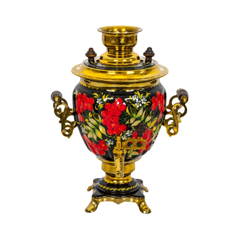 Самовар электрический 3 л, Рябина с белыми цветочками на черном фоне, желудь