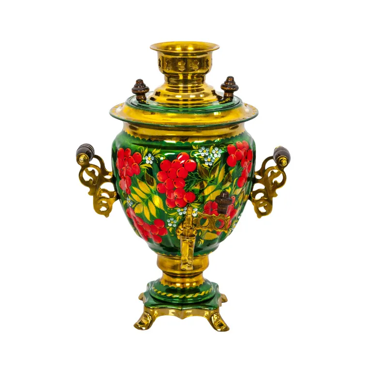Самовар электрический 3 л, Рябина с белыми цветочками на зеленом фоне, желудь