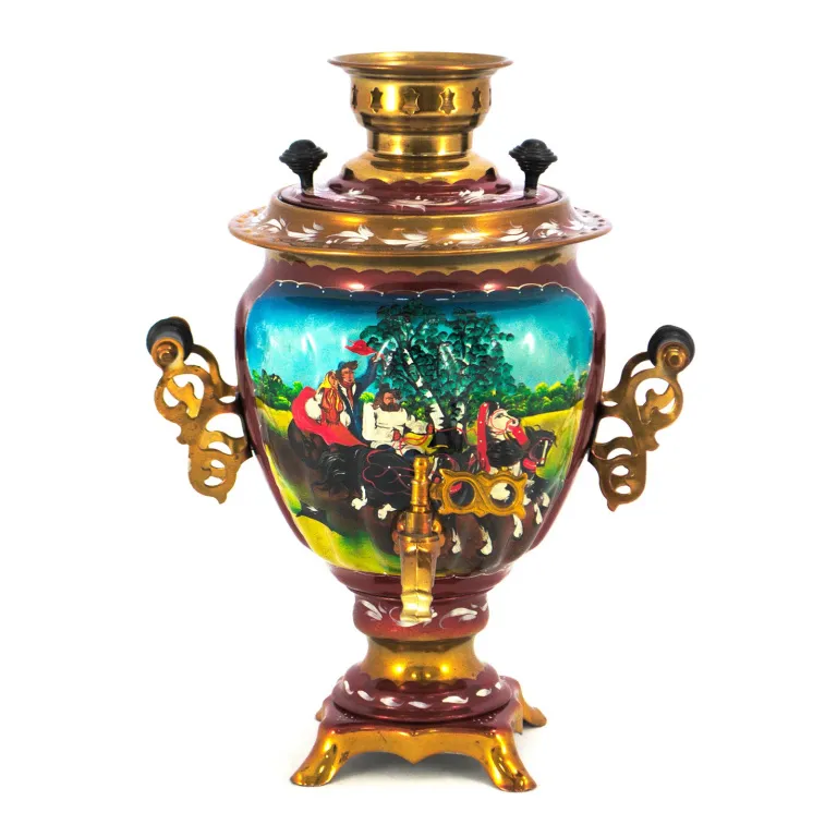 Самовар электрический 3 л, Тройка летняя на красном фоне, желудь