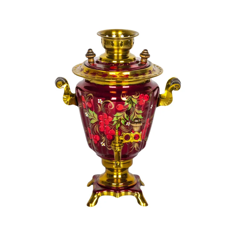 Самовар электрический 3 л, Ягоды рябины на красном фоне, конус