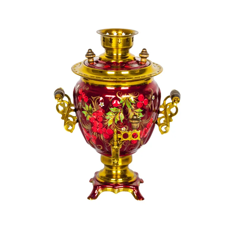 Самовар электрический 3 л, Ягоды рябины на красном фоне, желудь