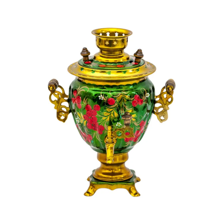 Самовар электрический 3 л, Ягоды рябины на зеленом фоне, желудь