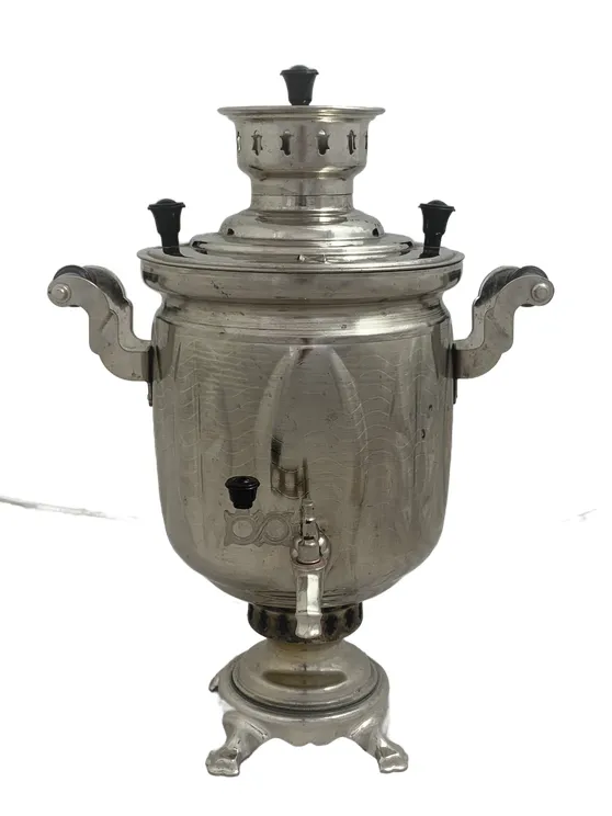 Самовар Банка, листья, 5 литров, 1984 год, завод Штамп Тула, восстановлен, никель, белый, труба 65 мм