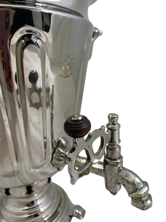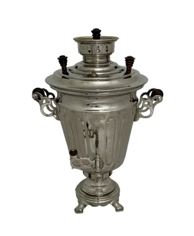 Цена на товар может измениться после поступления товара. Точную цену уточняйте у нашего менеджера. Телефон: 8 (812) 336-25-25Самовар Рюмка дольная, 4 литра, Суксун, восстановлен, 50-е годы ХХ века, никель, белый, труба 65 мм
