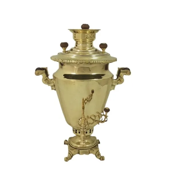 Цена на товар может измениться после поступления товара. Точную цену уточняйте у нашего менеджера. Телефон: 8 (812) 336-25-25Самовар Рюмка гладкая, 5,5 литров, не клейменая, конец 19 начало 20 века, латунь, желтый, труба 66 мм
