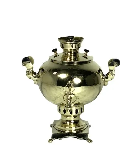Самовар на двоих Шар 1,3 литра, клеймо отсутствует, предположительно Романовъ, конец 19 начало 20 века, восстановлен, латунь, желтый, труба 37 мм -  в комплект не входит.